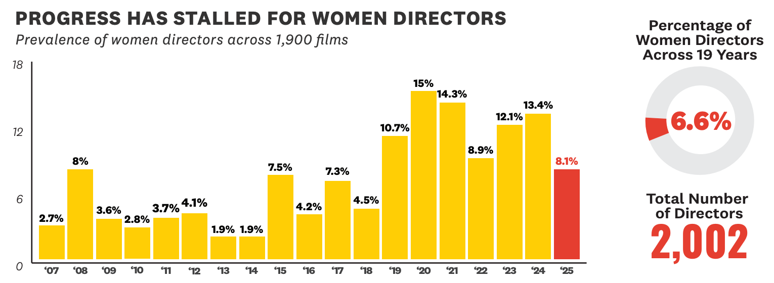 Whereas only 8% of top 100 grossing films had women directors according to USC Annenberg (pdf alert):