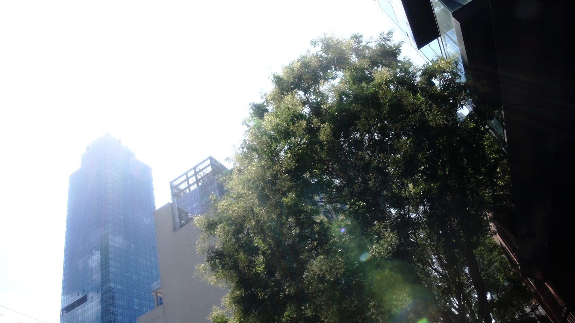 I’m proud of the intuition I held while shooting this short. I’m going for something aesthetically ugly, so the ‘mistakes’ have to look right — they have to be the correct mistakes. In the past I would have needed a couple of camera tests, but for this I snapped on the 24mm lens, threw a frost filter over it, put the picture profile to ‘Clear’ (this adds contrast and clarity at the expense of roll-off and saturation, but I don’t want the saturation and the frost fixes the roll-off), and trooped around LIC grabbing angles I liked without having any good way to view it in the brightness and heat. Still I got the shots.